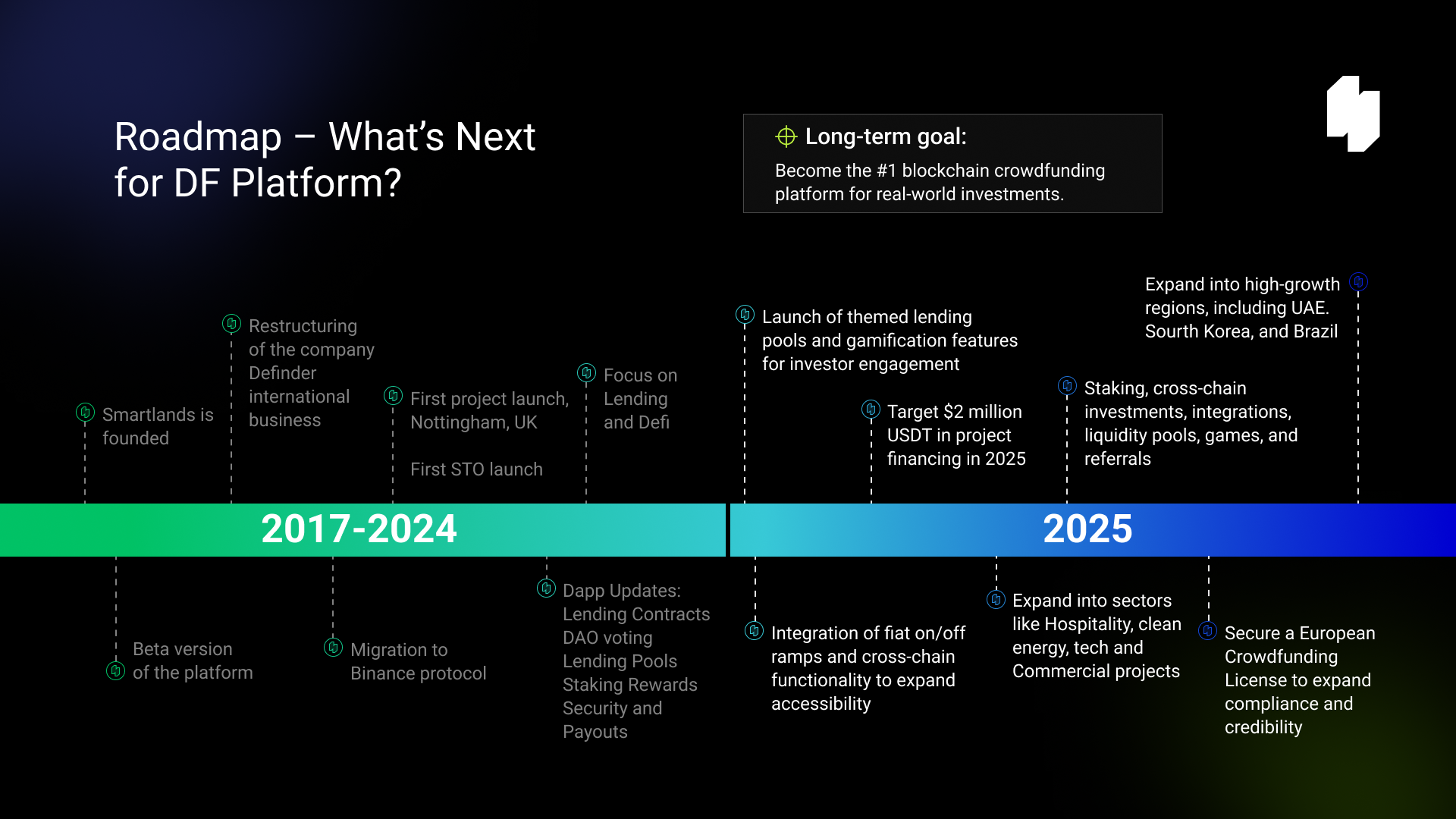 **Long-term Goal:** Become the #1 blockchain crowdfunding platform for real-world investments.&#x20;